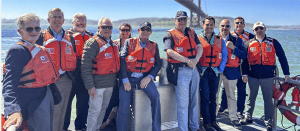 A BENS delegation visited the U.S. Coast Guard Pacific Area this week to gain insights into the operations and capabilities of the USCG. The group embarked on a thrilling ride around the San Francisco Bay aboard a medium response boat, experiencing the agility, speed, and maneuverability of the vessel while observing various points of interest along the coastline. Members also toured USCGC Stratton, USCGC Tern and the USCGC Polar Star in dry dock, gaining firsthand insights into the vessels’ capabilities, equipment, and maintenance procedures.